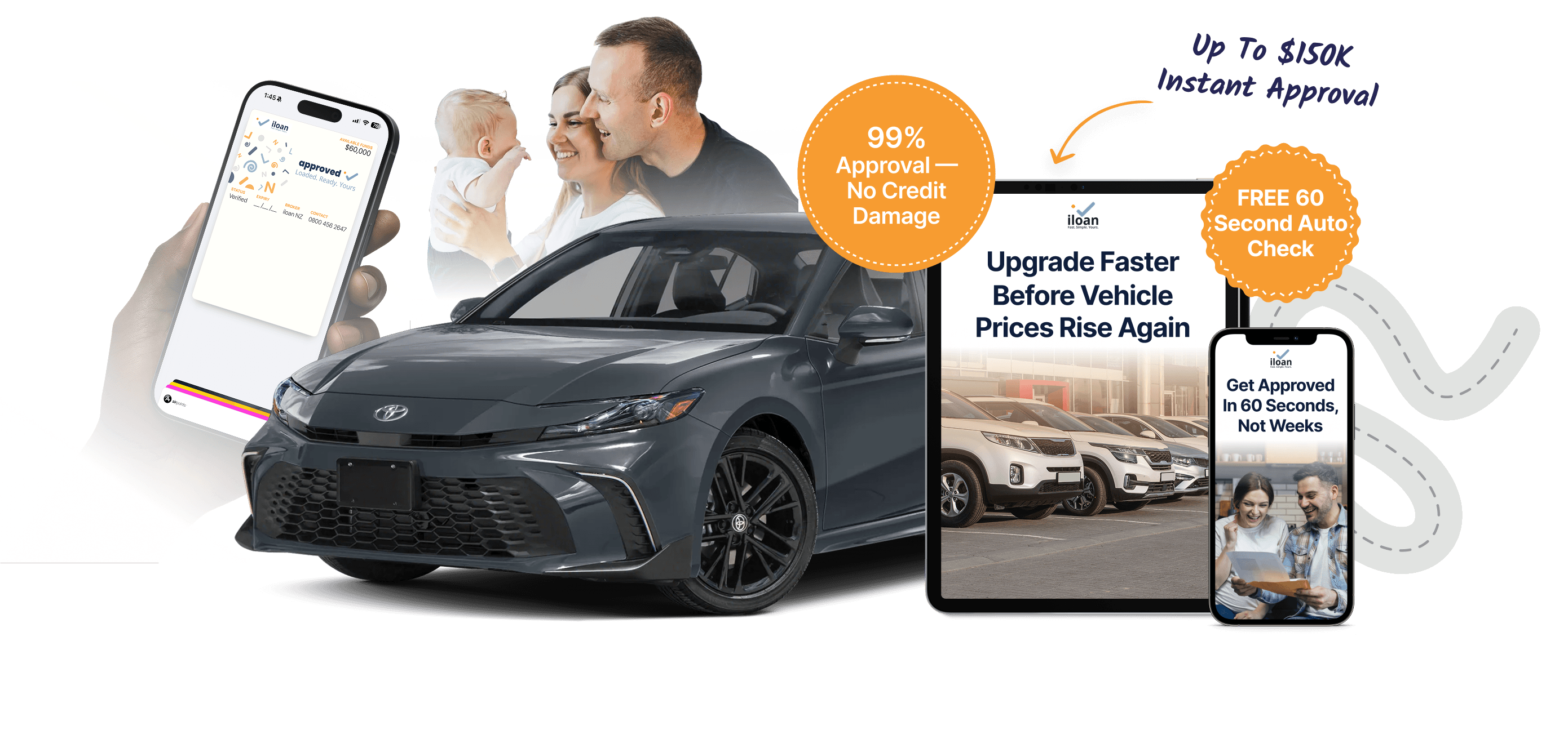iloan built the 99% Auto-Approval Engine to provide better vehicle financing for NZ families. Our system instantly confirms if you’ll be able to get a loan based on your credit profile, financial situation, and vehicle type. All of this happens in 60 Seconds, and not a single inquiry hits your credit file during the process. Your score stays protected. And you walk away knowing exactly how much you can borrow before you even start shopping.